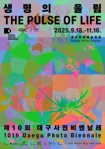 제10회 대구사진비엔날레: 생명의 울림날짜 2025. 9. 18.(목) – 11. 16.(일)장소 대구문화예술회관 1~11, 13 전시관생명이란 무엇인가.이 근본적인 질문은 오랜 시간 동안 사상가, 예술가, 과학자들에 의해 끊임없이 탐구되어 왔다. 생명의 정의는 단순한 생물학적 범위를 넘어, 인간과 모든 생명체의 관계를 포함하는 깊은 철학적 탐구로 확장...
