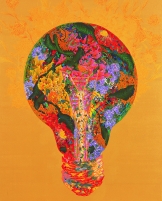 전구의 빛이 소통의 기회를 열어주고 그 안에서 우리의 삶이 완성되어 갔다는 작가의 말처럼,전구는 고맙고 희망적인 메시지를 전하는 도구다. 작가에게 전구는 소통의 상징이고 그 안에가득한 꽃은 소통의 언어가 되는 셈이다. 그리고 그 꽃은 작가만의 특별한 색이다.
