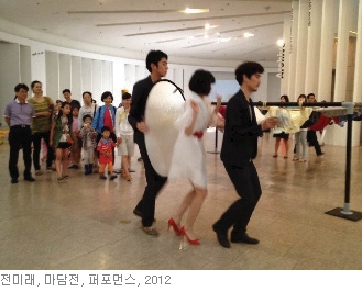 양지윤 큐레이터의 추천 작가 전미래는 미술관 혹은 갤러리 공간을 이용한 다양한 설치와 퍼포먼스 작업을 한다. 그녀의 설치작업은 단순한 시각적 경험의 오브제로 대상화되기보다는 주체의 공감각적인 경험의 조건을 형성하여, 미술 공간에서의 감각 경험에 관한 구태를 깨고 관람자의 역동적인 신체경험과 인지경험을 활성화한다. 이러한 설치는 종종 공간에 대한 관례화된 예측들을 깨뜨림으로써, 불안을 초래하고 감각지각을 날 서게 하는 동시에 미술제도에 대한 반성적 각성을 초래한다. 퍼포먼스 또한 미술 공간에 관한 다양한 관습적, 속물적 태도들, 어느덧 관람자들에게 체화되어 자연스러울 지경이 된 그 태도들에 대한 위트 있는 비판을 담아낸다.