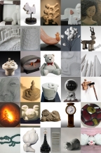지문과 같은 물결이 가득한 반달 위에 사람이 앉아 있는 김희용의 작품은 밤의 꿈, 안식을 상징하는 것 같다. 하지만 수많은 파동의 줄무늬들은 사람들의 지문을 떠올리게 하고 그 욕망의 움켜쥠을 떠올리게도 한다. 파동의 이미지는 장성재의 둥근 오석 표면에서도 물결친다. 그것은 불균형하고 스쳐 지나는 색으로 이루어져 붓질의 행로를 연상시킨다. 누구나 알아볼 수 있을 것 같은 그 형태들은 돌을 부드러운 존재로 변화시키고 공들여 깎아낸 표면을 칼로 척척 쳐낸 부드러운 나무토막 같아보이게 만든다. 이호철의 부드러운 시계도 초현실주의의 시간의 기억처럼 물성을 넘어선 시간의 개념을 가미함으로써 단단한 물질이 꽃처럼 화사하고 부드러운 표면이 되게 하였다.