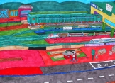 _정종필 / 1990년생. 따뜻한 색감으로 새, 동물, 인물들을 그리는 창작자. 최근에는 과거의 기억들 가운데 상징적이었던 모임, 잔치, 행사들을 그려나가면서 자신의 그림을 확장해 나가고 있다. 볼펜과 마카를 주로 사용하며, 세상에 존재하는 모든 종류의 자동차와 운송수단, 만국기, 공룡 등을 백과사전처럼 기억 속에서 끄집어내어 화면 위에 하나의 낱말처럼 펼쳐 그린다. 천개의 기억 장소들이 머릿속에서 서랍처럼 하나씩 열리듯이.