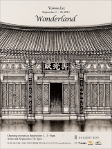 갤러리구 전시에서 선보이는 봉은사 지장전, 금산사 미륵전, 월정사 수광전, 백담사, 현등사, 백련사, 전등사, 동명사 등의 사찰은 비슷한 추녀나 처마의 모습을 보이면서도 미묘한 차이를 드러낸다. 이는 한국의 건축물이 반드시 건축만의 의미가 있는 것이 아니라 주변의 절경과 어우러져야 하고, 절 건축물의 배치에 따라서도 조금씩 다르게 보이기 때문이다. 특히 주변의 환경과 각각의 절에서 나타나는 개인적인 경험들을 완전히 버릴 수가 없어 이번 전시에서는 묵 작업 이외에도 색이 들어간 작업들을 함께 선보인다. 이렇듯 건축과 개인의 감정이 끊임없이 교차되는 가운데, 작가는 절에 방문했을 때의 삶의 모습과 역술, 종교적인 공간의 복합성 때문에 느끼는 묘한 감정을 <원더랜드>라는 제목에 담아내고 있다.