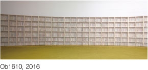 그가 한 화면 안에 묶어 놓은 중첩된 이미지들은 남기기 위한 능동적인 행위로써 '기록'보다 남겨진 '흔적'에 가깝다. 비움에서 채움까지, 선택과 중첩의 간격마다 행위의 주체로서 그가 의도한 것은 남기기보다 남겨짐이다. 이번 전시에서 백과사전과 책장은 작가 개인의 오랜 기억의 표상으로 시간의 관계를 이어주는 단초가 된다. 관심은 이어 타인의 시간이 축적된 책장, 선반, 공간으로 이동하였다. 이곳에는 타인의 시간과 그것을 바라보는 작가의 시간이 중첩되어 있다.