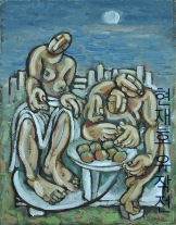 어눌한 얼굴과 비정상적으로 큰 가슴. 손. 발을 특징으로 하는 왜곡된 인물상을 통하여 삶의 진정성을 잘 보여 주고 있습니다.