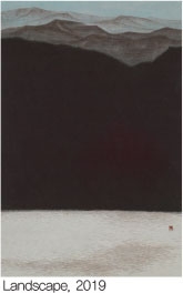 수백 번의 붓질과 석채라는 화려하고 까다로운 물성을 가진 안료를 씀에도 불구하고 하연수의 풍경은 ‘단색화’ 같다.