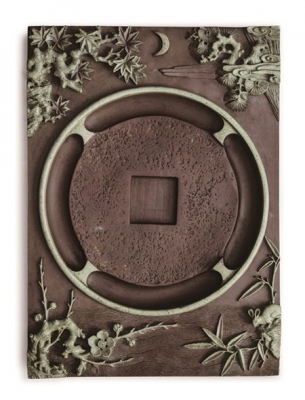 〈위원화초석 월하매죽문연〉, 조선 15-16세기, 15.2x21.1x2.3cm