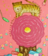 꽃愛 빠진 호랭이는 무섭지 않고 권위적이지도 않고 다만 희화적이고 해학적인 이미지로 묘사해서 핑크와 하늘색의 따듯한 색감으로 보는 이의 마음을 편안하게 해준다.