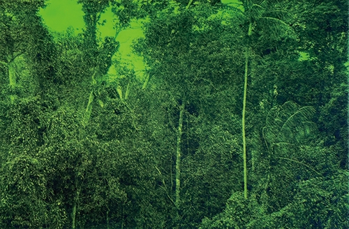 유봉상 작품의 시작은 모든 창작의 과정이 그러하듯 ‘리서치’부터 시작된다. 인터넷을 통해 호수나 강에서 배를 타고 물 위에서 바라볼 수 있는 숲을 고른다. 그리고 현실의 숲으로 간다. 촬영한 사진 중 어떤 사진을 골라 어떻게 화면을 프레이밍(framing)할 것인가의 단계부터 오롯이 작가의 고민이 시작되며, 여기서 진중하게 이미지를 선정하고, 수십만 개의 못을 박는 성실하지만 고단한 노동의 시간을 감내해야 한다. 정직한 노동자가 가졌을 법한 손으로, 지독한 집중을 요구하는 작업에 몰두하여 과감하게 그리고 섬세하게 빛의 세계를 창조한다.
