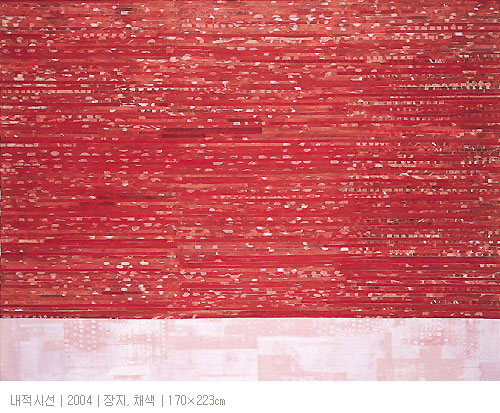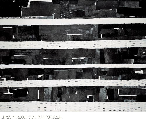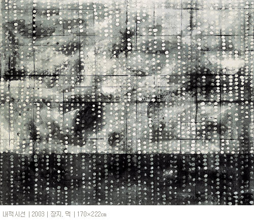 여기에 경쾌하면서 때로는 육중한 붓자국이나 얼룩이 같은 색조로 또는 짙고 옅음의 변화를 가지면서 반복적으로 나열되면서 사라졌다 다시 나타나고 또다시 사라진다. 그것은 화면에서 형태로서 한 위치를 점유하며 고정된 것이 아니라 자유롭게 소요하면서 화면바탕에서 우주의 폭과 깊이를 활성화시키고 있다. 이 붓자국이나 얼룩은 현존재에서 일어나는 일상적 감정이 투영된 형식이면서, 다른 한편으로는 고려청자나 조선백자, 민화의 이미지를 연상시키면서 민족적 감성으로 이어준다. 따라서 이것은 처음에 화면에서 언뜻 형태로 보이다가 이내 사라짐과 함께 그것에 함축된 감성이 풀려져 나오면서 감성과 감성의 일련의 고리로 환원된다. 우리는 이 일련의 감성의 고리를 따라 무한한 시간과 공간에서 자유롭게 유희한다. 그리고 어느 듯 개체의 감성을 초월하여 역사적 보편적 감성을 체득하면서 우주적 존재로 거듭 탄생하고 있음을 깨닫게 되는 것이다. 결과적으로 작가는 작품을 통해 인간의 존재에 대한 철학적 물음을 회화적으로 제시한다고 할 수 있다. 그것은 우리 현존재의 인간은 생물학적인 인간이 아니라, 역사와 문화와 우주의 전과정을 함축하고 있는 총체로서 인류학적인 인간임을 확언하고 있는 것이다.