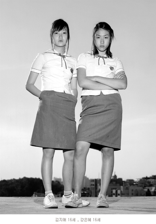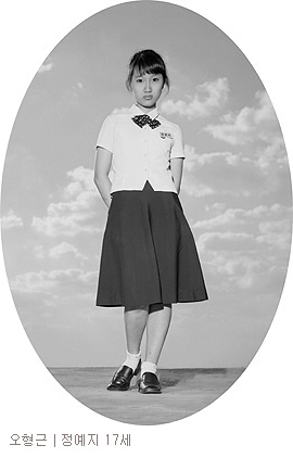교복을 착용한 소녀들은 자신들이 이제껏 익혀왔던 표현능력을 맘껏 발휘한다. 학생 신분의 표식인 교복이 그 일차적 기능에 앞서 권력집단의 취향임을 인식하지 못한 채 렌즈를 향해 정면대응의 소녀연기를 펼친다. 순수하고 풋풋한 향기가 더 아름답다는 것을 깨달을 새도 없이 그녀들은 사회가 쳐놓은 미적 욕망의 그물망에 걸려들어 버리는 것이다. 그렇다고 이를 부정한다는 것은 무모하다. 오히려 반복하여 정렬된 여고생 연작에서 우리는 단정할 수 없는 미지의 아우라를 깨닫게 된다. 오형근은 자신이 지닌 영화적이고 대중문화적 재능을 유감없이 발휘하며 사회의 한 단면을 이야기하고, 우리는 그의 작업을 통해 현실을 확인하고 있다.