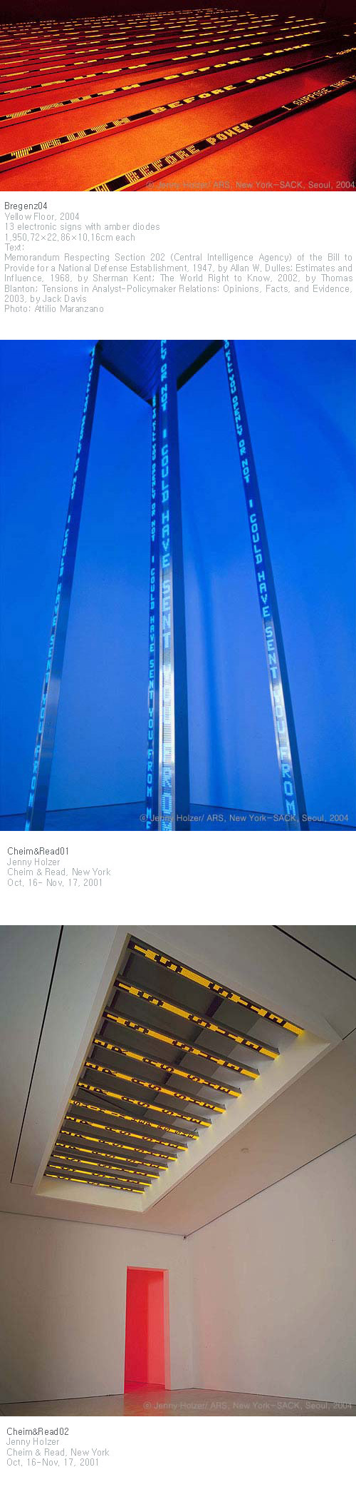 Jenny Holzer: Xenon (2001), 그리고 Kunsthaus Bregenz에서 열린 2004년 전시제목을 딴 도록