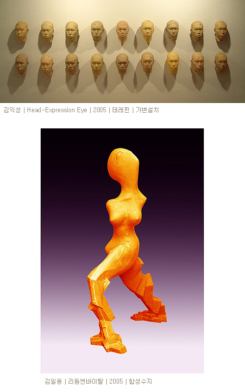 김익성은 신체 구조나 심리적 열등감에 의한 콤플렉스를 열판 위에서 서서히 녹아가는 인체로 표현하고 있다.