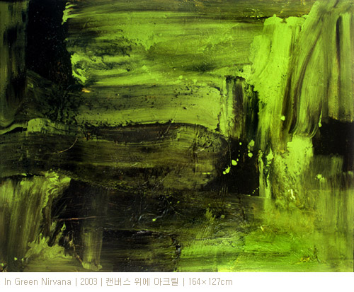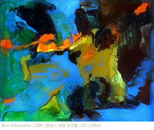 The Formless has Form흔히 나의 회화 작품들은 추상표현주의적 이라거나 액션페인팅 이라 불린다. 하지만, 그 전세대들이 행했던 ‘사물(有)의 형태’를 빌어온 연상작용에 의한 상징적이고, 유기체적인 추상과는 틀리게 ‘형이 없는 것에서 형을 찾는다.’ 는 동양철학에서 비롯된 것이다. ‘무(無)의 세계’ 에서 찾아낸 추상의 형과 내 ‘몸짓’ 의 흔적을 ‘에너지’ 로써 표출하는 것이 내 작업의 근본이다.