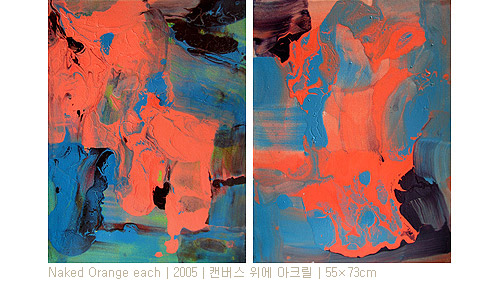 속도감 있고 힘이 넘치는 이 에너지들을 쏟아 붓기 위해 나는 캔버스를 바닥에 눕히고, 가장 강한 에너지를 발산할 것 같은 최고의 극단적인 색들을 대비시키며 유동적인 붓자국들을 계속 남겨 간다. 캔버스가 바닥에 눕혀진 위치는 그림이 한눈에 들어오지 않기 때문에 그림이 완성 될 때까지도 어떤 형을 갖춘 그림이 될지 예측할 수가 없다. 의도적으로 꾸며지거나 예비 드로잉이나 스케치가 필요 없는 그림이 내가 하는 추상이다.