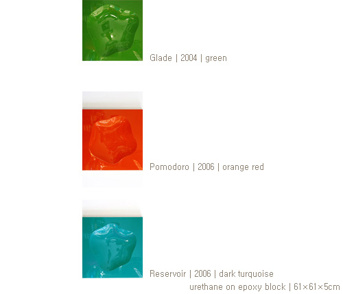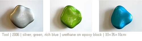 7년전 나의 작업 방식에 일대 변화가 일어났다. 그 때까지, 나의 작품들은 추상적이고 미니멀 했으며 쉽게 회화로 분류되었다. 이전의 평면적이고 착시적인 요소를 배제하고 나는 패널을 깎고 다듬어 굴곡을 만들고 굽어지는 듯한 표면에 운동감을 부여하기 위해 광택이 나는 자동차 도색용 페인트로 마무리 코팅을 시도했다. 이렇게 새롭게 태어난 모노크롬 형체에 나는 조형적 특성을 가미해 다소 오브제 스러운 페인팅을 만들어내게 되었다. 하지만, 나는 절대 이 새로운 작품을 조각으로 보지 않았다. 나에게 있어 그것은 단지 페인팅을 하는데 있어 보다 더 새로운 방식을 끊임없이 추구해 나가는 과정 속에서 얻어진 자연스러운 진화 혹은 반전이었다. 그러므로 이 새로운 형식을 페인팅과 조각의 중간 단계로 분류하려는 많은 관객들의 반응에도 전혀 동요되지 않을 수 있었다. 내가 아는 한, 나는 여전히 페인팅을 하고 있으므로…