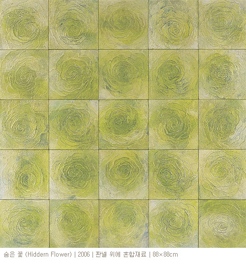 작가는 이 규칙들을 잘 인식하고 있으며, 그것들을 통찰하는 수단을 가지고 있다. 또한 개인적 터치에 능숙하며, 그 통사론과 의미론의 중첩을 식별할 줄 아는 명석함을 지녔다. 그래서 붓의 터치 행위는 수많은 교차와 노정들이 만나는 합류점에서 구성된다. 동시에 그것들은 양면성을 띤 이미지들을 취급함으로써, 혹은 그 최종적 결과들 속에서 작가가 지닌 문화의 감광판과 기억의 충동으로 회귀된다.