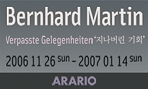 번하드 마틴은 독일 하노버 생으로 현재 베를린에서 작품 활동을 하고 있고, 그의 작품은 회화, 조각, 그리고 오브제의 다양한 장르, 그의 신작 회화 작품을 비롯하여 거대한 설치 작품인 <어두운 방(Dark Room)> 등 총 50여 점을 선보임