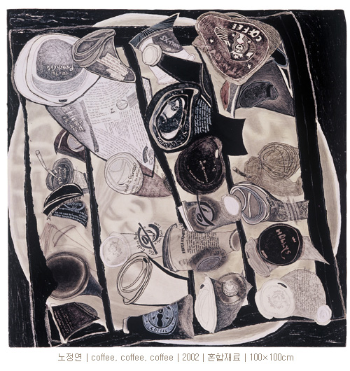 노정연starbucks를 주축으로 카페라는 공간이 본격적으로 우리문화를 바꾸기 시작하게 된 2000년에 들어오면서부터 커피점은 일상의 일부가 되기 시작했고, 자연스럽게 카페 문화를 소재로 작업을 하게 되었다. 밥보다 비싼 커피를 마시는 게 이제 보편적인 현상이 되어버린 요즘 새로운 문화형성의 주체가 되어 소비문화를 이끌어가는 나 자신의 시선에서 보는 내가 살고 있는 커피점 문화를 담고자 한다.
