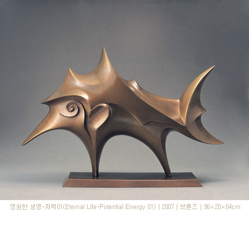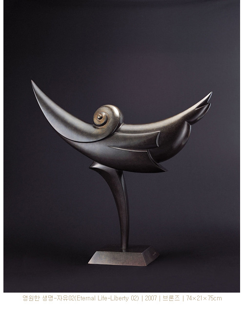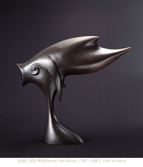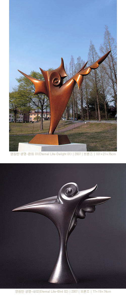 조형적으로 즉흥적이고 세련된 감각이 돋보이는 이러한 작품들은 현대조각의 역사에서 보면 혈통적으로 브란쿠시나 아르프의 추상조각과 연결고리를 찾을 수 있다. 루마니아 태생의 조각가인 브란쿠시(C. Brancusi)가 1910년대 시도한 <마이아스트라>(후에 ‘공간의 새’로 바뀜) 같은 작품들은 로댕의 표현주의적 조각의 영향에서 벗어나 매끈한 청동상으로 수직으로 비상하는 타원형의 새의 이미지를 형상화하였다. 이것은 사실주의 조각이나 표현주의 조각에 익숙한 사람들에게 큰 충격을 준 사건이었고, 시각 너머의 본질적 형상을 포착한 그의 시도는 현대조각의 새로운 땅을 개척하는데 기여했다. 20세기 이후 추상조각가들은 적어도 그에게 크고 작은 빚을 지고 있는 셈이다.