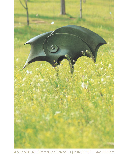 이러한 개념적 변화는 양식에 있어서도 많은 변화를 가져왔는데, 가장 두드러진 변화는 과거 환원적 개념 아래 등장했던 단순하고 풍부한 양감이 이제 이질적인 것들을 화해시키려는 의지로 인해 다소 선(線)적으로 변했다는 점이다. 즉흥적이고 자유로운 드로잉을 연상시키는 선들에 의해 형태가 이루어지다보니 과거보다 날카로운 면들이 많아졌다. 그럼으로써 과거의 정적이고 어머니 품 같은 푸근한 느낌은 약화되었지만, 대신 음악적 리듬감이 요한 스트라우스(Johann Strauss)의 ‘봄의 왈츠’를 듣는 것처럼 생동감 있게 증폭되었다. 그것은 겨울의 오랜 추위를 견뎌내고 새봄에 싹을 피우는 생명의 활기이다. 그 생명의 리듬은 대상이 무엇이듯 영원성을 보장하는 듯하다. 그가 작품의 제목을 ‘불사명’(不死命: 영원히 죽지 않는 생명)이라 붙인 것에서도 그런 의도가 엿보인다.
