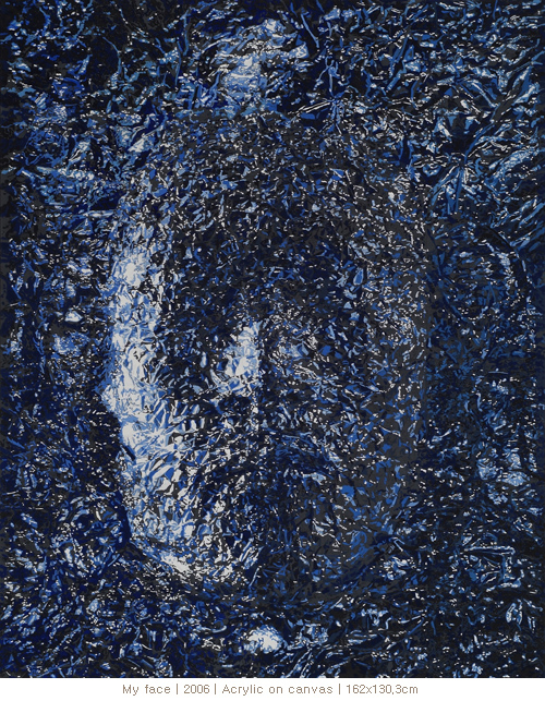 실제로 세심하게 자신의 얼굴을 떠내면, 다른 가면 또는 조소 작품들 보다 시각적인 효과가 정말 대단하다. 그러나 캔버스 위에 그려진 빛의 반사에 의한 시각적 이끌림은 나만의 방식으로 재현된 것이다. 작품 속의 재현은 형상적 사물의 자연스러운 묘사와 상황의 재구성으로 의미를 다양화하고 모호하게 얽힘으로써 다양한 해석을 유도한다.
