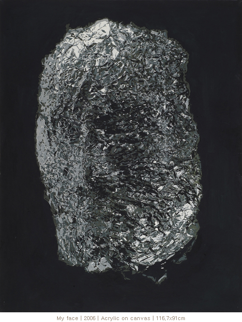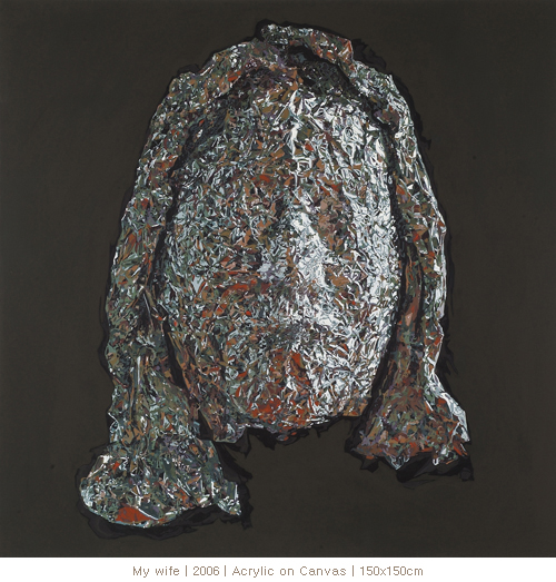 나의 작업은 은박의 반짝임에서 오는 시각적 이끌림으로부터 시작되었다. 얼굴이 여러 가지 표정을 가지고 있듯이, 은박의 빛 반사는 조명과 각도에 의해서 전혀 다른 표정을 만들어내기도 한다. 예리한 빛의 변화가 얼굴의 표정, 사물의 느낌을 다시 만들어 내는 것이다.