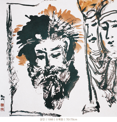 그리스도의 얼굴을 표현한 이 그림은 수묵화가 가지고 있는 묘사기법과는 이미지를 보여준다. 역시 힘차면서도 거칠게 그리고 빠르게 전개되는 운필이 인상적이다. 형태를 구체화시키기보다는 심상을 빠르게 복사해내려는 의지가 반영되고 있다. 세부적인 표현을 지양하고도 고뇌에 찬 그리스도의 이미지가 충분히 전달되고 있다. 어쩌면 세심하게 표현된 그 어떤 그리스도상보다도 한층 인간적인 깊이를 느끼게 하는 것도 단순히 이전의 작품을 보고 재현하는 형식에서 탈피, 오직 그 자신의 종교적인 신념에 의탁하고 있기 때문인지 모른다. 즉, 그리스도상에 대한 일체의 선입견을 물리치고 무르익은 필치를 심상에 맡긴 결과인 것 이다. 한마디로 군더더기 없이 심상으로 솔직하게 받아낸 새로운 유형의 그리스도상이다.