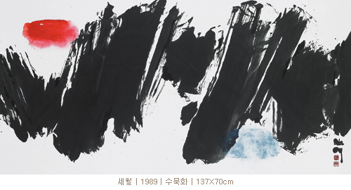 이는 심의의 표현이기에 앞서 실제의 자연풍경에서 받아들이는 감동의 표현이기에 그렇다. 다시 말해 현실의 심상화라는 과정을 거치는 것이다. 가령 기암괴석이 도열하는 설악산을 대상으로 한 그림은 광폭한 말이 날뛰는 듯 거칠고 숨가쁘게 전개되는 운필이 시선을 압도한다.