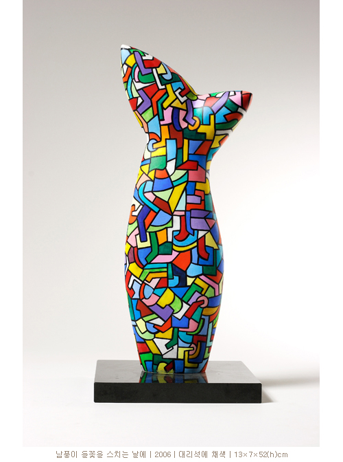 니키드 생팔 또는 로버트 인디애나, 올덴버그처럼 독보적인 조형성과 강렬한 색채감각을 지닌 조각 작품들은 이제 우리에게 더이상 낯설지 않다. 근래 국내 조각계에서도 작가만의 개성 넘치는 양식과 감각적인 색감을 띤 작품들이 과거의 고답적인 조각 작품들과는 다른 반응을 얻고 있다.