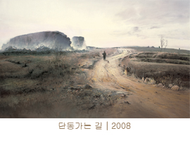인위적이지 않고  자연스러운 길을 찾던 중 북한의 길에 주목하게 된 작가는 단순히 길을 그려낸다기 보다 하나로 이어지지 못하는 분단의 아픔과 그리움을 화면에 빚어내고 있습니다.