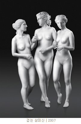 ‘여신들(Graces)’연작은 다양한 서구 고전 여신들의 두상들을 평범한 한국 여성들의 몸과 합체한 후 섬세한 디지털 작업으로 인체의 피부를 매끄럽게 ‘조각화’ 한 사진작품들이다. 작품에서 보여 지는 ‘여신’들은 한국의 일상의 삶의 몸짓을 담고 있다. 공손히 인사를 하거나 입을 가린 수줍은 자태를 비롯하여 자위하는 포즈까지 여성의 다양한 몸짓을 통해 사회적인 인식과 관습에 대해 조망하고 있다. 또한 서구와는 구별되는 동성 간의 사교문화를 포착하여 아시아 문화의 고유성을 드러내고 있다. 데비 한의 작업에서 보여 지는 문화혼성 (hybrid)은 현실에 대한 응시를 통해 서구와 한국 내지 아시아라는 두 문화권의 차이를 드러냄으로써 서구와의 이상적인 하모니가 아닌 있는 그대로의 모순된 현실을 주시하고 있다. 작가는 이 연작을 통해 현 사회 속에 ‘아이덴티티와 관련된 미의 진정한 모습이란 과연 무엇인가?’ 라는 중요한 질문을 던지고 있다.