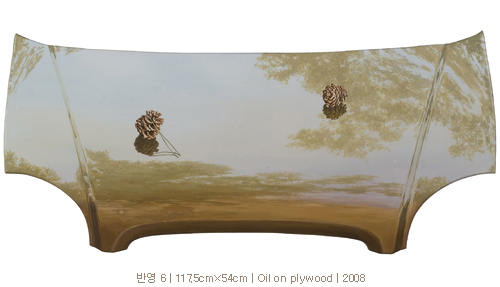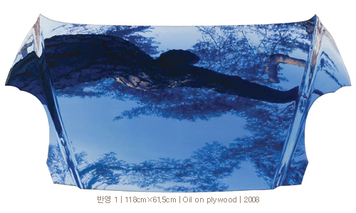 그런데 그동안 주로 캔버스에 유화물감으로 작업해오던 작가가 이번에는 자동차 보닛(bonnet) 위에 소나무 그리기를 시도한다. 현대문명의 이기로서 우리 삶에 깊숙이 들어와 있는 금속성의 자동차들, 현대 삶의 속도감과 건조함을 대변하는 자동차의 한 부분인 보닛 강철판을 이용하여 그 위에 소나무를 그린다.