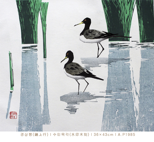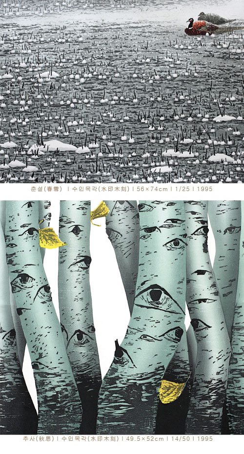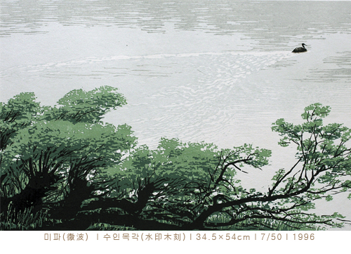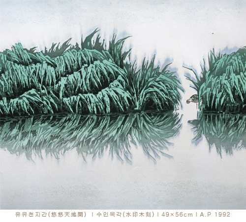 수인목판화(水印木版畵)는 순수한 중국인들의 정취가 그대로 묻어있는 독특한 판화기법의 하나로서, 마치 한 폭의 수묵화를 대하는 듯한 착각에 빠지게 만든다. 화선지에 찍어내는 재료나 기법에서도 그렇지만 단호하면서도 강렬한 세계관을 구사함으로써 아시아적인 채취를 더욱 깊이 음미할 수 있는 매력을 지닌다.