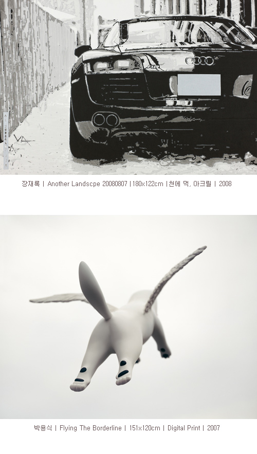또한 대형건물의 창에 스티커 작업을 한 후 내부에서 촬영을 하여 바깥세상과 오버랩 시키고 있는 이재욱의 사진과, 면천에 수묵으로 현대 도시인들이 욕망하는 자동차, 샹들리에, 보석 등 시리즈 작업을 해온 장재록의 수묵화, 그리고 회화과 출신의 사진가 주도양의 우주와 같이 둥근 다시점 사진 시리즈를 선보일 예정입니다.