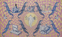 켄트는 마스크를 쓴 캐릭터들이 상징하는 폭력과 파괴력을 자수라고 하는 지극히 여성적이고 가정적인 매체로 재탄생 시킨다. 전쟁, 테러, 강간과 같은 오늘날 우리 사회의 어두운 그림자들을 있는 그대로 드러내는 것이 아니라, 허위의 유토피아의 풍경을 아름답게 수놓은 천에 새김으로써 작업의 아이러니가 완성된다. 교수형에 처하거나 악마에게 먹히거나 잔인한 방법으로 고문을 당하는 등의 모습을 섬세하고 화려하며 우리에게 너무나 친근한 자수라는 방식으로 제작함으로써, 이러한 공포들이 우리와 직접적인 관계가 없을 때 우리가 얼마나 수동적이고 무책임하게 되는지에 대하여 생각해 보게끔 한다.
