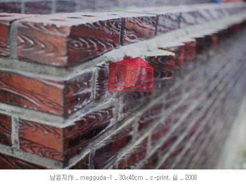 남윤지는 우리들이 살고 있는 도시공간이라는 환경에서 발견되는 낡고, 부서지고, 부러진 건축물이나 자연, 사물의 사진을 찍어 그 부분을 실로 바느질해 본래 형태를 만들어주는 작업을 한다. 그녀는 아스팔트 건널목의 흰 줄 표시 부분의 색채가 닳아 지워져 있는 부분을 정성스럽게 빨간 직선의 실로 바느질하여 연결시키고, 흰 페인트가 떨어져 나간 낡은 벽면 도 붉은 색 실로 촘촘하게 꿰매놓는다. 가지를 잘라 본체만 남은 가로수는 흰색 실로 원래 모습으로 돌려놓고 있다. 남윤지는 흔히 지나쳐 버릴 수 있는 평범한 장소의 건축물이나 사물과 자연을 눈여겨보며 시간이 만들어낸 낡은 흔적들을 역시 수공이라는 시간이 필요한 바느질로 메우며 치료하고 있다. 축약된 공간에서의 치유의 흔적은 직선이 만들어 낸 평면성으로 형태가 더욱 드러나고 회복의 강한 심리를 반영한다. 재생이나 복귀를 위한 섬세한 묘사가 아닌 무심한 듯 한 직선 질감은 이미 어떤 방식도 다른 시공간으로 인해 원래와 같을 수 없다는 심적 상태를 보여준다.