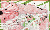 “사람들은 생생한 눈동자가 완벽하게 없음에도 불구하고 꿰뚫는 눈을 가지고 있음을 알아차릴 수 있을 것이다. 단 하나의 존재의 단위인 ‘실루엣’과 광대하고 막연한 실루엣 안의 명암이 인물을 나타나게 한다. 다른 사건의 한 부분이며 그림에 나타나는 이 사람들은 사진으로부터 주관적인 인물로 존재하고, 객관적인 인물과는 다른 사건들과 연결되어 있다. …그래피티 같은 방식은 나에겐 일상의 작업이다. 나 자신과 내 주위의 공간을 선택된 텍스트와 이미지들의 도움으로 조종할 수 있다는 사실이 물질적 크기와 잠재적 수용력으로 퍼지고 강력하게 연출된 큰 드로잉을 만든다. 형태는 모티브가 되고, 그림 안의 인물들은 하나에서 다른 하나로 모티브의 미묘한 변화를 이끌고, 나는 다른 주제들에 반하는 이런 요소들의 유연함과 자율성에 안심한다.” -작가노트