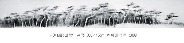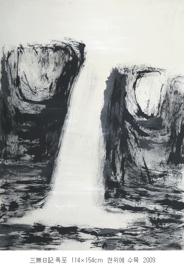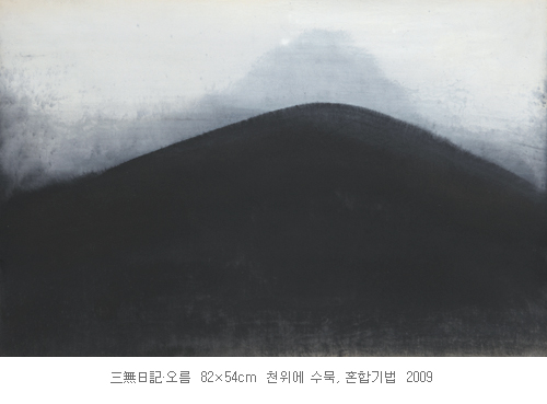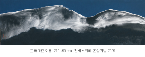 Representing an invisible energy in a visible form or the landscape is a privilege given to the artists. And such invisible energy has been represented in different ways over time or depending on artists. As for Kang Boo-eon who keeps the reflective attitude, he faces the canvas with no base painting, and therefore, the meeting An Sich between canvas and brush leaves free flows on the canvas. The flows found on his landscape paintings are equated with the so-called wind, which is deemed an important factor opening our respiration. The strength of the wind flowing horizontally is expressed differently over time and seasons. The image of a summer twilight below the clouds or a severe winter day affected by the cold northern wind varies in terms of its intensity due to types of brushes or variations of his arm strength. Sometimes, a frame of a tiny life is captured with a fine brush touch and at other times, the power of the surf is expressed as if the canvas were struck hard by a bush-clover broom.
