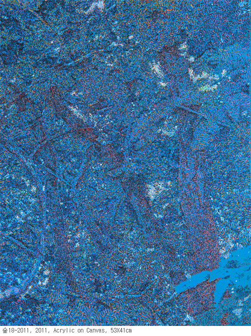 물론 2011년 근작에선 그가 오랜 시간 차용하던 사물들은 '숲'이 전면에 나서게 됨과 동시에 사라져 버렸다. 현재의 작업에서 그 사물들을 가시적으로 확인하기란 불가능하다. 마치 붓질 하나, 색감 하나하나가 모여 훌륭한 자작시를 만들어 놓듯 서정적 미감이 가득한 형국으로 변모했다. 그런 점에서 오늘날의 작업들은 어떤 대상을 통해 직접적인 설명을 뒷받침하는 수단이 멀어진 대신 삶과 살아감 속에서 자연으로부터 얻는 생명과 희망의 찬가가 자신만의 독특한 시각 아래 녹아들게 되었고, 보다 우회적인 화법으로 전향한 조형논리는 설명이 아닌 사유를 증폭시키는 분동으로 작용하고 있다.