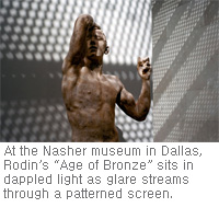 Mr. Piano said he designed the Nasher with natural light in mind. The museum has an arched glass roof with a perforated aluminum screen in an egg-crate pattern that directs the sun into the galleries, which were laid out in anticipation of the sun’s daily arc from southeast to southwest.
