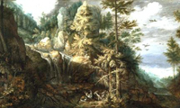 Savery was part of a Dutch family of artists, Flemish by birth, who worked for Emperor Rudolf II in Prague. Rudolf sent him into the Tyrol to draw the natural wonders he found there, and about a decade later, long after Savery had returned to Amsterdam and Utrecht, those drawings were used to make the St. Anthony painting. (There aren't many mountains and waterfalls, never mind Alpine forests, in the Dutch lowlands.) The painting -- about 19-by-37 inches -- is among Savery's most acclaimed.
