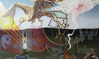 “Smoke Signal, Rope Umbilical” is acrylic on canvas by Wendell Gladstone that is part of “L.A. Now,” an exhibit of emerging artists’ work that opened in December at the Las Vegas Art Museum.