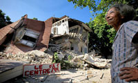 Artist Maritou Chenet looks over what is left of the Centre d'Art museum in Port-au-Prince. The building was destroyed in the quake, and some artworks were crushed or exposed to the elements. More photos (Brian Vander Brug / Los Angeles Times)
