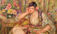 There are also beautiful passages of painting here -- the purple lip of a porcelain washbasin opening a gash in a muddy brown background, or a voluptuous crimson ruff as sensuous pedestal elevating a young girl's profile. But Renoir seems never to have gotten over his youthful decision to abandon official training at Paris' Ecole des Beaux-Arts in favor of running off to the forest at Fontainebleau to paint outdoors.