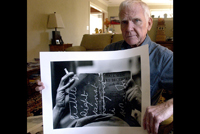 This November 2004 photo shows photographer Charles Moore holding one of his photographs. Moore, a photographer who chronicled the civil rights movement, has died. John Edgley of Edgley Cremation Services in West Palm Beach, Fla., confirmed that Moore died Thursday, March 11, 2010. He was 79. AP Photo/TimesDaily, Jim Hannon.