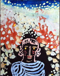 The painting, gouache on paper, shows the figure of a woman surrounded by flowers.