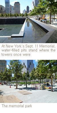 Although next week's 10th anniversary is billed as the opening of the memorial, the truth is that it will be years before the World Trade Center site is complete. Since the two water features are part of an eight-acre park, until that is finished, it is too early to make a final judgment on the memorial. The park will be approached at street level from any of the surrounding four streets, and this intimate connection to the life of the city—at the moment the memorial is isolated from its surroundings—will hopefully counteract the nihilism of the black pits. An eight-acre park in the center of Lower Manhattan is bound to attract people. The proximity of grieving families and lunching office workers will be unusual, but New Yorkers undoubtedly will find ways to make it work.