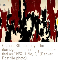 Damage to the painting — "1957-J-No. 2." — is estimated at $10,000.