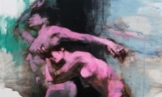 여체누드를 소재로 자연색을 벗어난 색채를 사용하면서 불균형한 면과 드로잉 표현으로 극적이며 암울한 분위기의 화면을 연출
