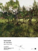 작가가 몇 년 전 버스를 타고 어느 공사현장 앞을 지나칠 때였다. 거대하고 육중한 푸른 천으로 뒤덮인 철거현장 앞에는 커다란 바리케이드가 세워져 있었다. 그는 그곳을 지나칠 때마다 매번 버스 안에서 그 풍경을 바라보며 고민하곤 했다. 그 고민은 너무나 평범한 풍경이지만 왜 그것이 우리에게 평범하게 다가오는지에 대한 의문으로 구체화되었다. 그 때 그가 주목했던 것은 그 바리케이드에 그려진 그림들이었다. 그것은 나무와 산, 호수, 무지개와 같은 것들로 구성된 그림이었는데, 썩 잘 그린 것은 아니었다. 그림이 그려진 철제 바리케이드는 그 너머의 철거현장을 가리기 위한 푸른 천막을 또 다시 가리고 있었는데, 그 앞을 지나가는 사람들은 전혀 일상적이지 않은 그 현실의 중간에 있는 그림을 사이에 두고 각자의 발걸음을 옮기고 있었다. 작가와 푸른 천막의 폐허 사이에는 바리케이드 그림이 있었다. 그것은 작가의 현실과 또 다른 현실의 중간에 존재하는 풍경이 가져다주는 경험이었다.